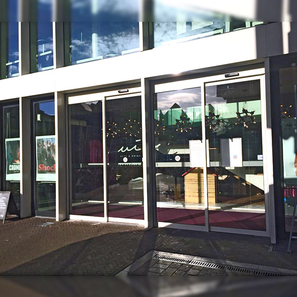 La puerta cortafuego consiste en una puerta automática corredera de cristal de apertura central o lateral con propiedades cortafuego.
